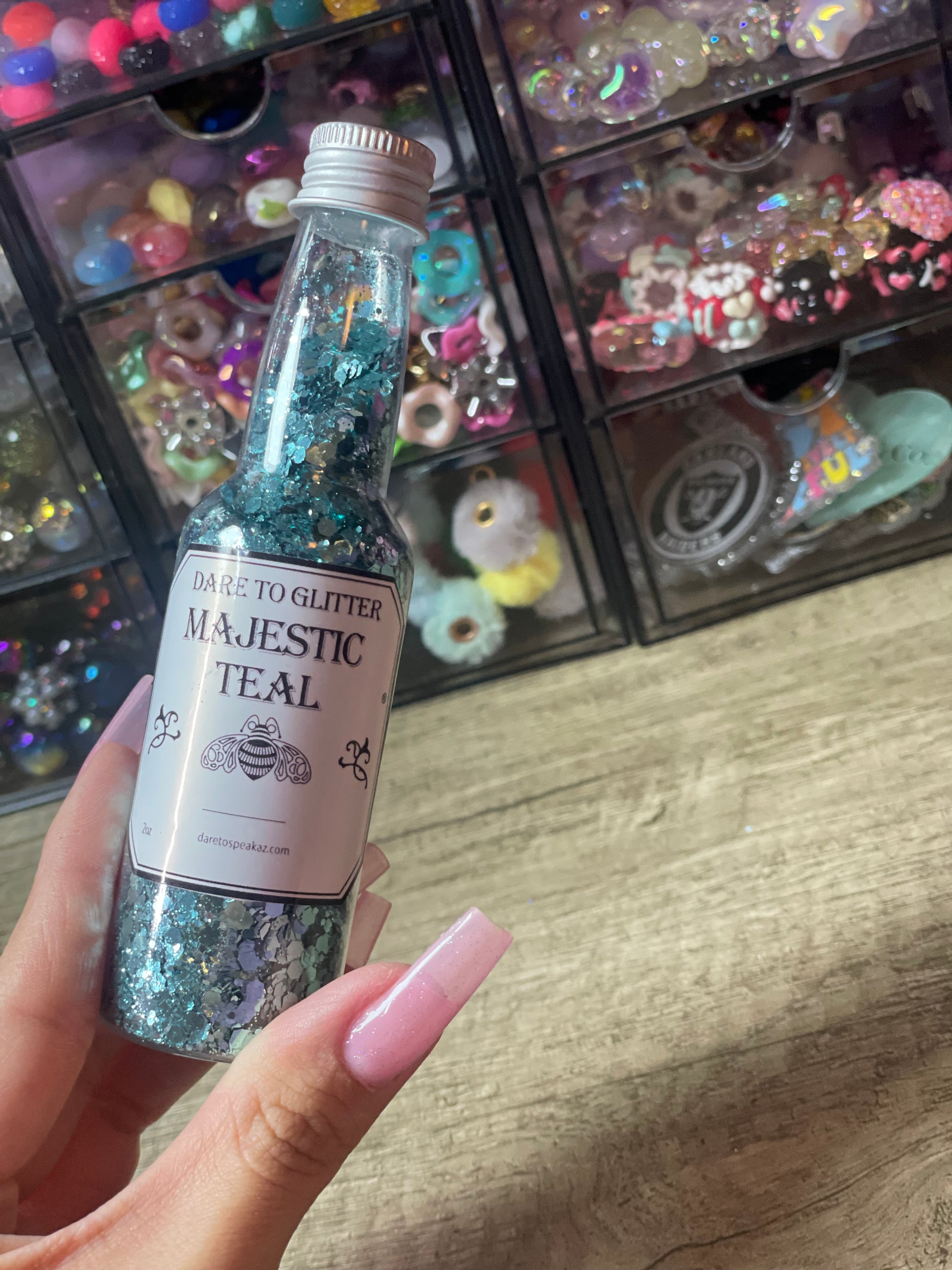 Create your own unique glitter mix with Majestic Teal by Dare to Speak Az! Choose up to 3 different glitters and watch as they are mixed and placed into a beautiful snow globe cup. Perfectly paired with a UVDTF cup wrap.