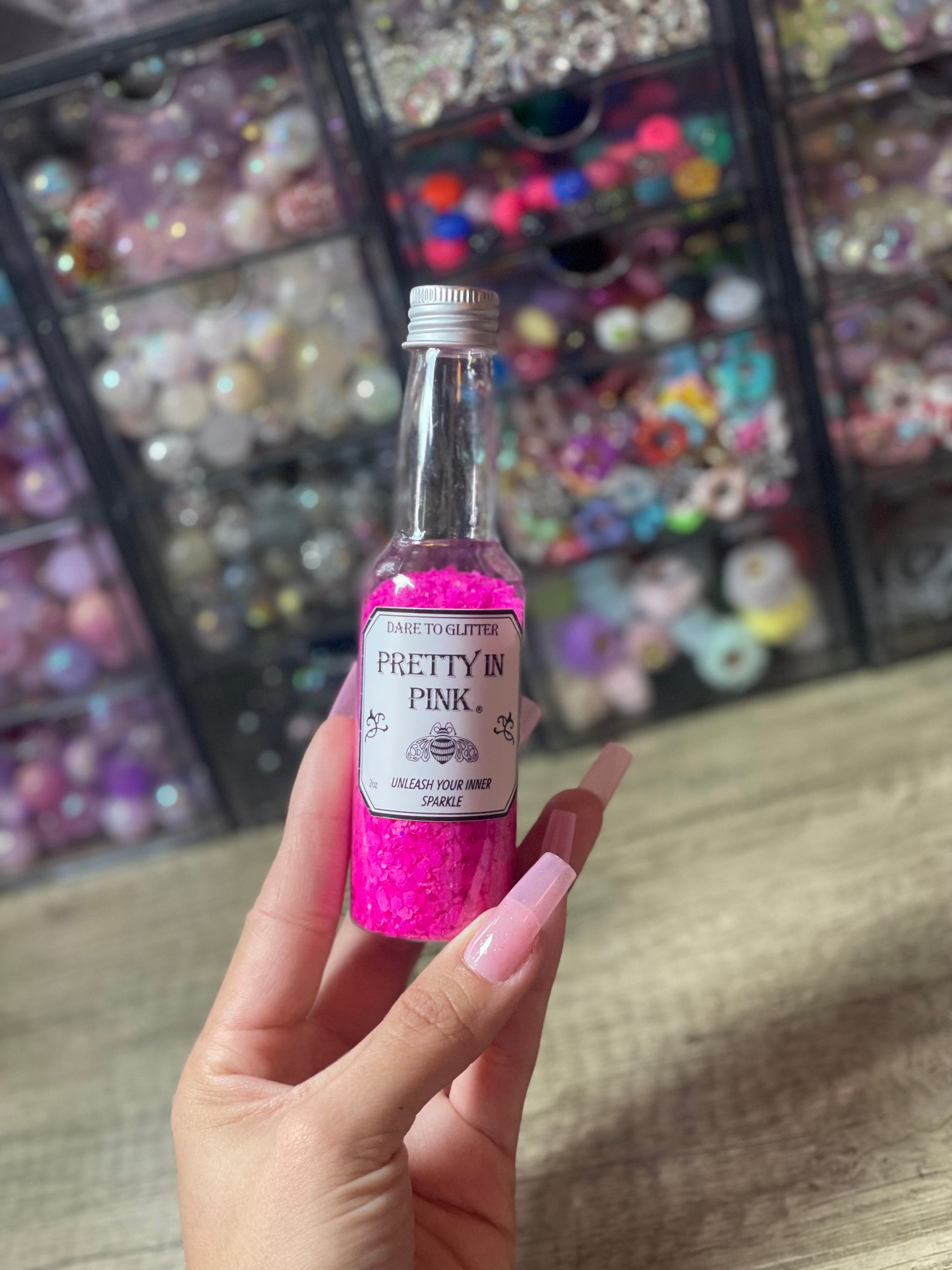 Create your own unique glitter mix with Pretty In Pink by Dare to Speak Az! Choose up to 3 different glitters and watch as they are mixed and placed into a beautiful snow globe cup. Perfectly paired with a UVDTF cup wrap.
