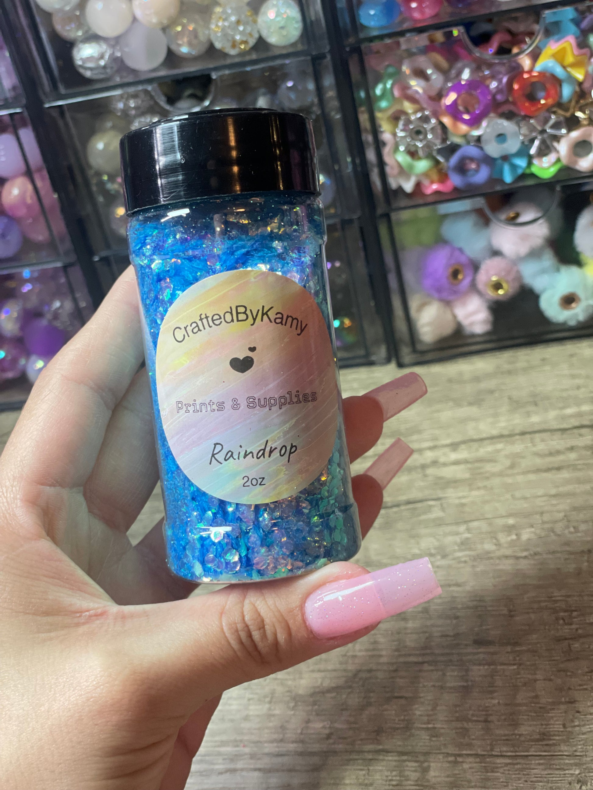 Create your own unique glitter mix with Raindrop by CraftedByKamy! Choose up to 3 different glitters and watch as they are mixed and placed into a beautiful snow globe cup. Perfectly paired with a UVDTF cup wrap.